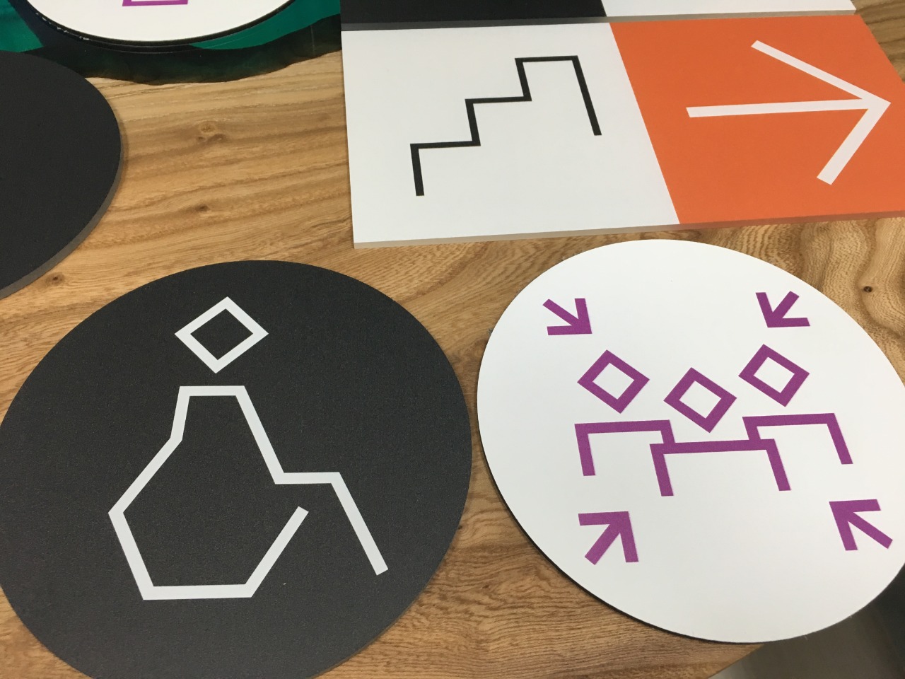 Навигационные указатели служат для ориентирования посетителей в здании музея или снаружи. Они должны гармонично вписываться в окружающее пространство и одновременно быть легко заметными и читаемыми.